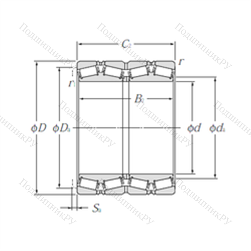 Подшипник роликовый радиально-упорный E-625924 у которого конструкционной особенностью являются ролики в форме конуса и разъемный корпус. Изделие также может быть укомплектовано наружным кольцом с упорным бортиком или большим углом, двухрядными или четырехрядными роликоподшипниками, утолщенной внешней шиной.