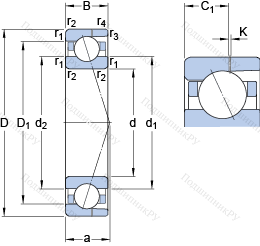 | Номинальная статическая грузоподъёмность | C0 | 21.6 | kN | |